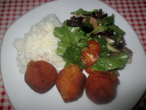 Sirvo sempre acompanhadas com salada de alface e cebola ( a minha avó materna, não sei porquê, para a salada que acompanhava as favas tinha a mania de cortar a alface em ripas, do género do corte do caldo verde). Se não tiver esta salada não me sabe ao mesmo. E de preferência cortada naquele formato específico. Desta vez, foi normal porque foi o marido que preparou a salada e esqueci-me de lhe dizer para a cortar em ripas... Mas a salada, cortada de que maneira for, parece que ajuda a refrescar o prato... Considero-a essencial!