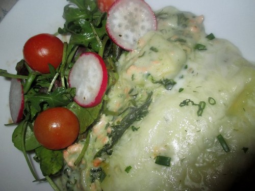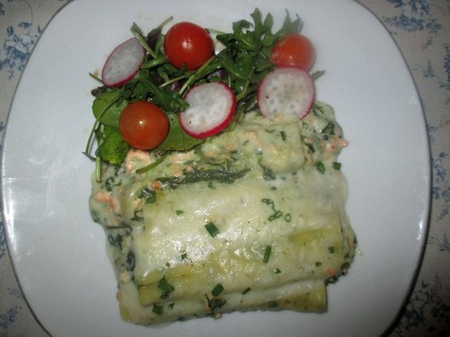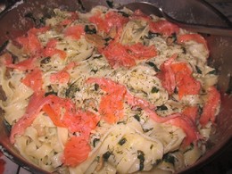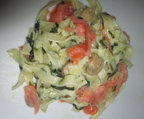 A inspiração continua nas massas... Sou louca por salmão... salmão ao natural, salmão fumado... hummmm! Então, por salmão fumado é uma verdadeira perdição! Não fosse o dito um pouco mais barato e seria comido com mais frequência:) Assim, tive que criar algo em que integrasse esta iguaria e sem a comer só como entrada ou petisco. E pensei "com o que ligará bem?". Ora, certamente, com massa. Poucas coisas não resultam com massa, afinal as massas têm essa mais valia, dão pano para mangas, que é o mesmo que dizer que servem para dar largas à imaginação ou que o céu é o limite! E esta experiência, com mais de uma década, resultou muito bem para nós (os bons garfos cá de casa, mesmo que metade não existissem nessa altura). Salmão, espinafres, cogumelos e um simples molho mediterrânico à base de azeite, alho e limão parecem-nos uma combinação abençoada. Mas as vantagens não se ficam apenas no sabor, vão mais além... é rápido de confeccionar, não sai tão dispendioso como possa parecer, é visualmente bonito e elegante...